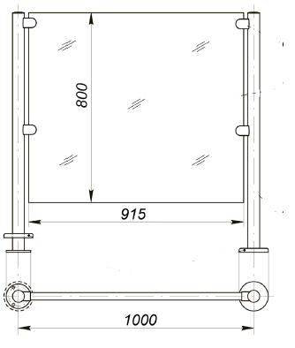 Закаленное стекло толщиной 8 мм удерживается держателями PERCo-BH02 0-03 за счет прижимного усилия. Вертикальные стойки используются стандартные из серии BH-02.