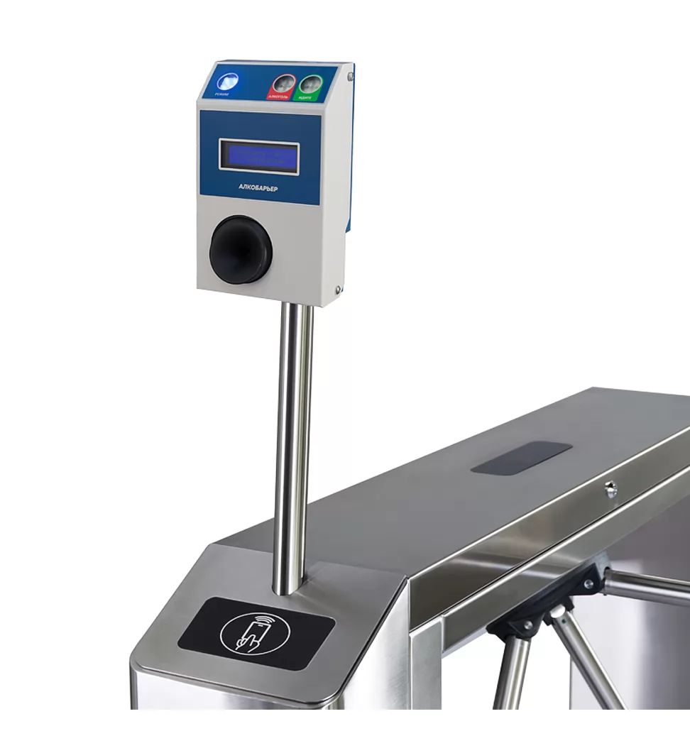 «Алкобарьер» – стационарный бесконтактный алкотестер, предназначенный для работы в качестве внешнего верифицирующего устройства в составе системы контроля доступа (СКУД).