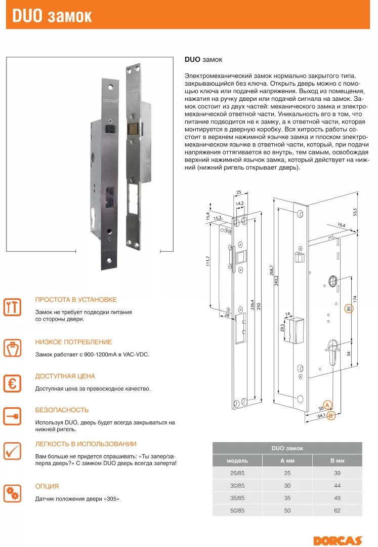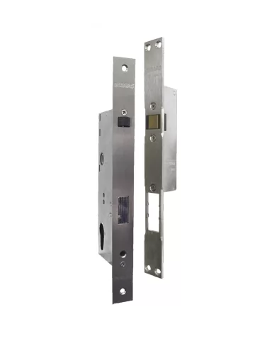 Электромеханический врезной замок нормально открытого типа, состоящей из 2 частей.