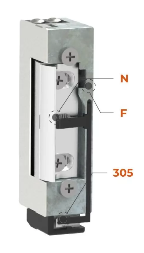 Универсальная ЭМЗ обратного действия (при подаче напряжения закрыта) , корпус симметричный (ДхШхГ 83х21х28мм), рабочее напряжение 12 или 24 VDC (43Ом), контакт мониторинга положения, регулируемый язычок. Предел прочности 3300 Н