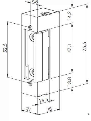 Универсальная ЭМЗ обратного действия (при подаче напряжения закрыта) , корпус симметричный (75,5х21х28мм), рабочее напряжение 12 VDC (0,25 A, 58Ом), встроенный диод (супрессор), регулируемый язычок. Предел прочности 3500 Н.