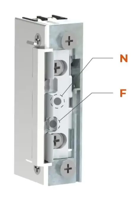 Универсальная узкопрофильная ЭМЗ прямого действия (при подаче напряжения открыта) , корпус симметричный (ДхШхГ 66х20,1х25.5мм), накладка TopDouble, рабочее напряжение 10-24V AC/DC (43 Ω), регулируемый радиусный язычок.