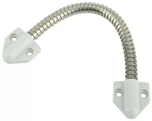 Для прямой подачи тока от дверной рамы на дверное полотно. Нержавеющий, гибкий металлический шланг. Колпаки крепления для монтажа на дверной раме и дверном полотне.