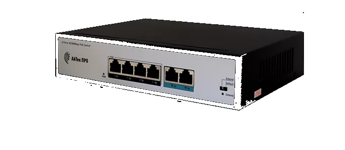 Неуправляемый специализированный сетевой коммутатор для видеонаблюдения 2* Uplink Ethernet (RJ-45) 10Base-T/100Base-TX; активных портов PoE - 4, Максимальная мощность на порт 30Вт, * PoE 802.3af/at, Метод А,/ B.; Бюджет PoE- 65Вт; Коммутационная матрица 1,6 Гбит/с; Размер таблицы MAC-адресов 2к; Скорость коммутации пакетов 1,25 М пакетов/с.; Watchdog PoE (таймер ≈5 минут); Multicast; 250 м (режим Extended); Электромагнитная совместимость FCC Part15 Class A,CE,RoHs Диапазон рабочих температур -20° ~ 55 ° C; Габариты 202*104*44 мм; Вес (нетто) 0,76 кг.