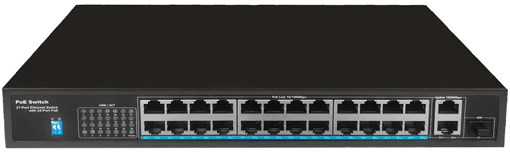 Сетевой интерфейс: 24x 8P8C (RJ-45) 10/100 Мбит/с, 2x 8P8C (RJ-45) 10/100/1000 Мбит/с, 1x SFP 100/1000 Мбит/с