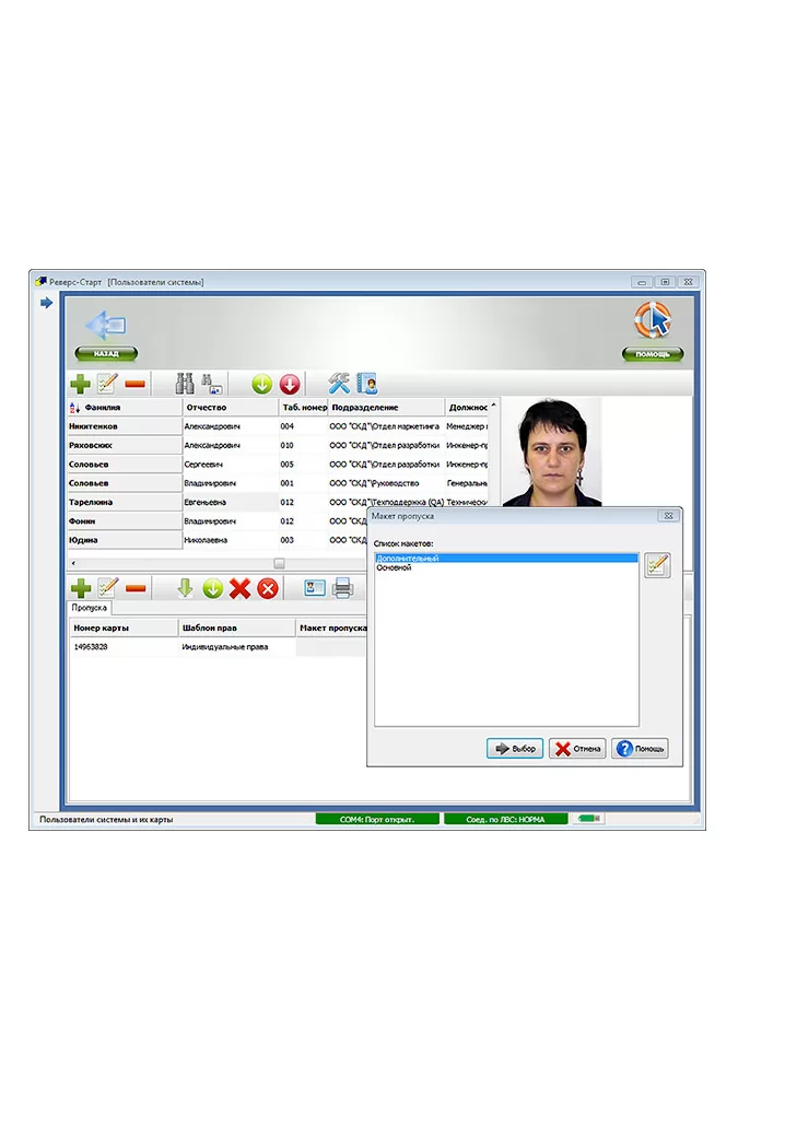 Активация во вкладке «Пропуска» ПО «РЕВЕРС 8000» дополнительной функции подготовка дизайна оформления пропусков с указанием данных из системной БД.