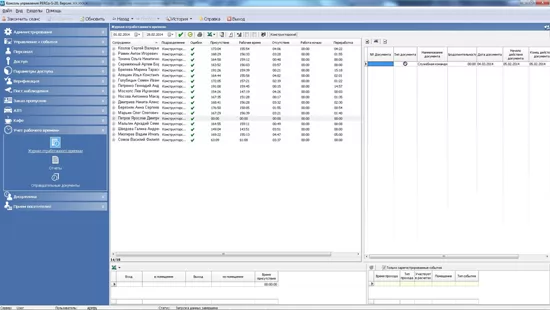 Раздел «Журнал отработанного времени» используется для ведения табельного учета на предприятии и служит для просмотра и корректировки суммарного рабочего времени сотрудников.