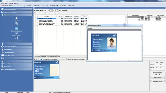 Раздел «Дизайнер пропусков» позволяет автоматизировать работу по оформлению постоянных и временных пропусков, оформить карты доступа в виде пропусков с фотографией и другими данными сотрудника или гостя.