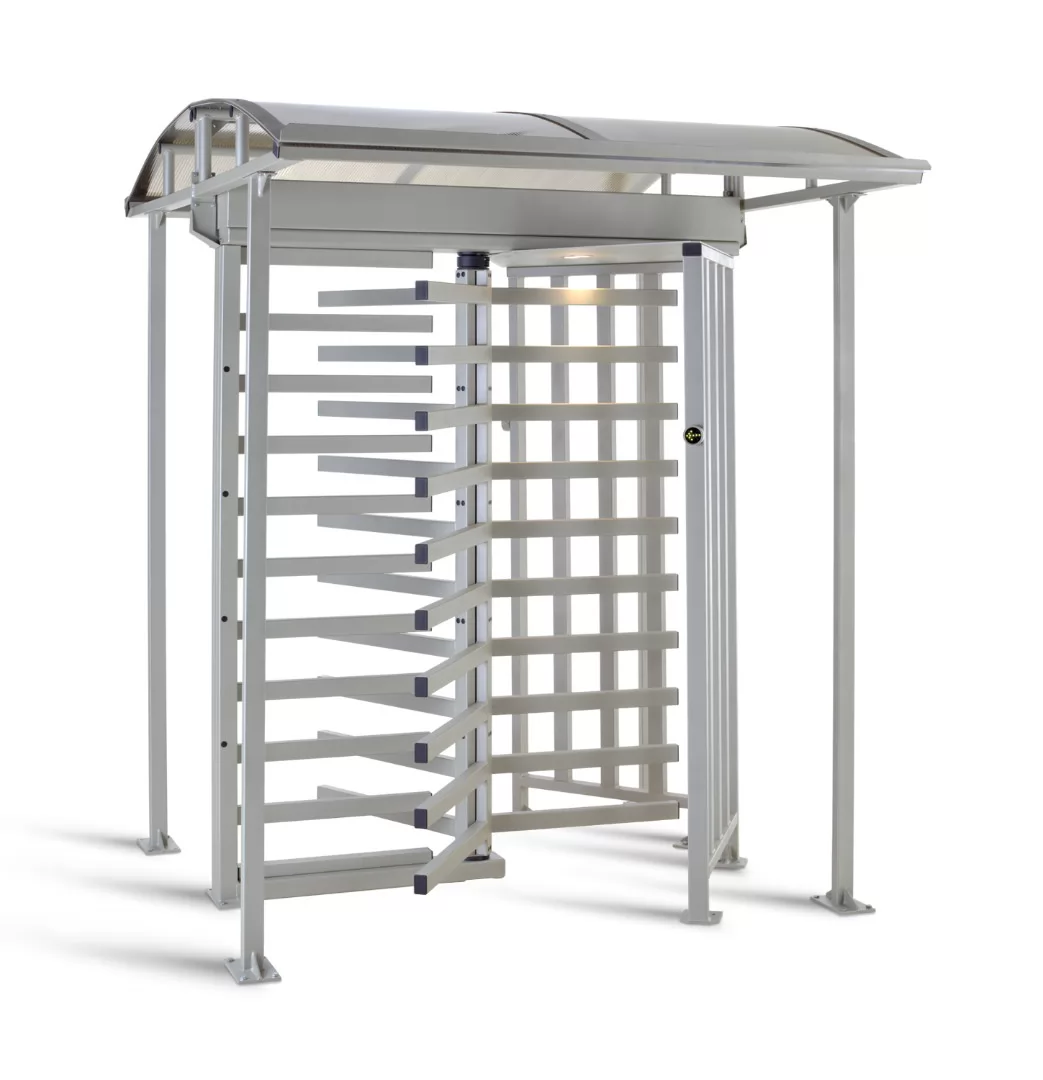 Дополнительная защита турникета от атмосферных осадков и попыток проникновения через его верх, достигается опциональной установкой крыши, соединяемой с турникетом в единую конструкцию.