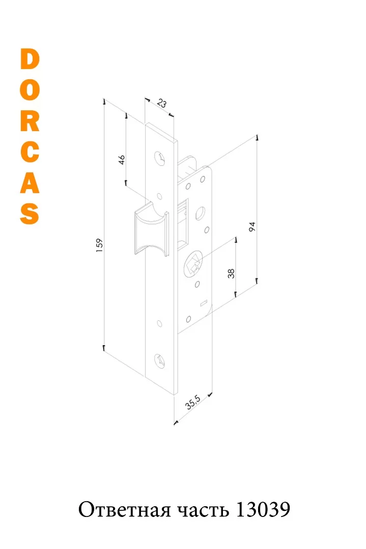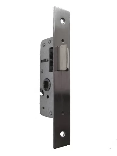 Ответная часть, обычно используется в место механического замка. Работает в паре с электромеханическими защелками. Имеет отверстие для четырехгранника дверной ручки.