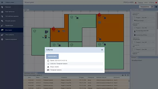 - мониторинг состояния и управление устройствами ОПС «Болид» в интерфейсе системы контроля доступа PERCo-Web