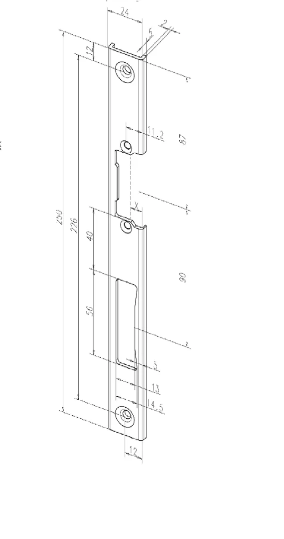 Планка Uобразная узкая для пластикового профиля, левая (правая), нержавеющая сталь, для ЭМЗ серий 14, 17, 116, 118