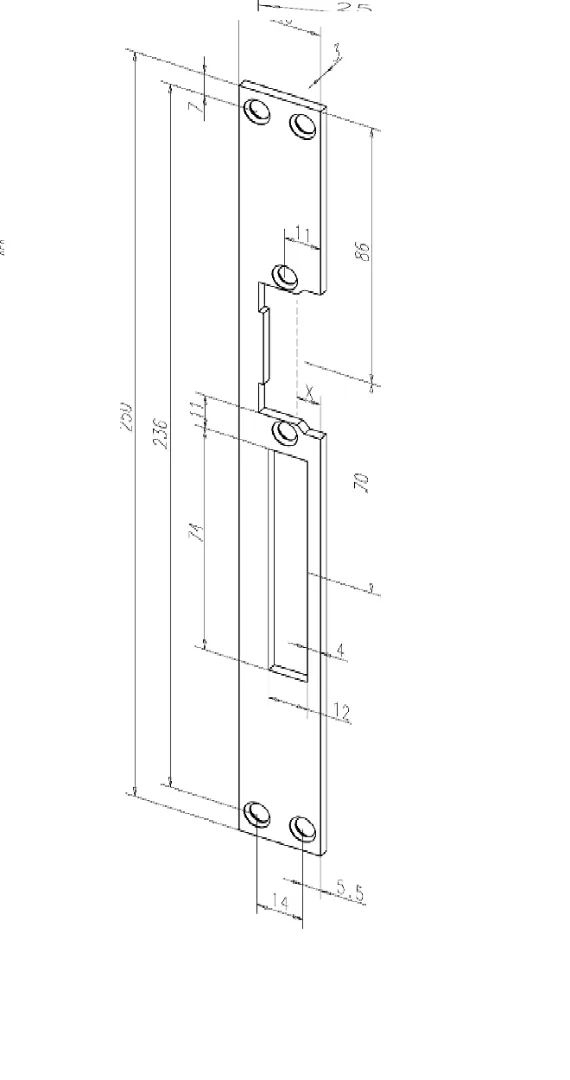 Планка плоская, большая, универсальная, покрытие цинк. Для ЭМЗ 14, 17, 118 серий, (расстояние между язычком и ригелем замка не менее 12 мм)