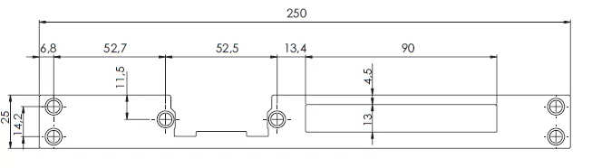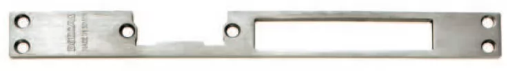 Планка плоская, большая, универсальная (250х25мм), окрашенная сталь, серый цвет (расстояние между язычком и ригелем замка не менее 14 мм), 4 крепежных отверстия.