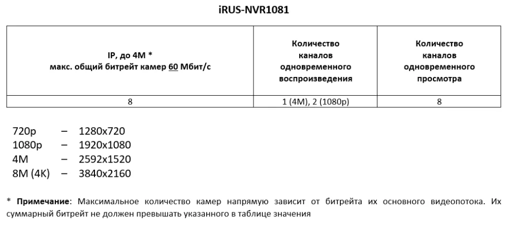 • Синхронное воспроизведение 2 каналов с разрешением 2 Мп
