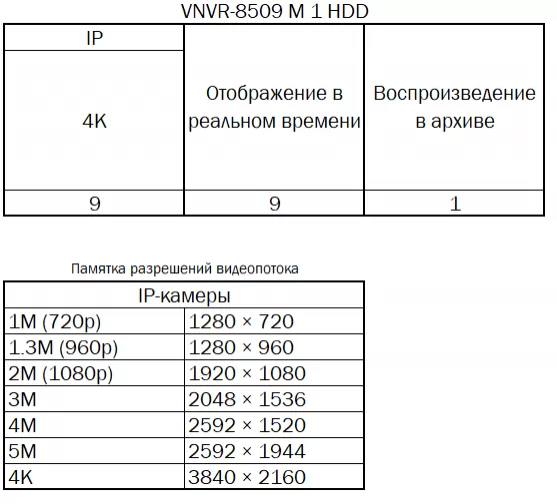 Режим работы регистратора: Сетевой; Количество каналов: 9; Аудиовход: Нет; Разрешение записи: 4K и ниже; Количество аудиовходов: Нет; Видеовыходы: 1 VGA (до 1920 х 1080), 1 HDMI (до 3840 x 2160); Количество жестких дисков: 1 до 10 TБ (в комплект не входит); Блок питания: 12В (DC) 2А;