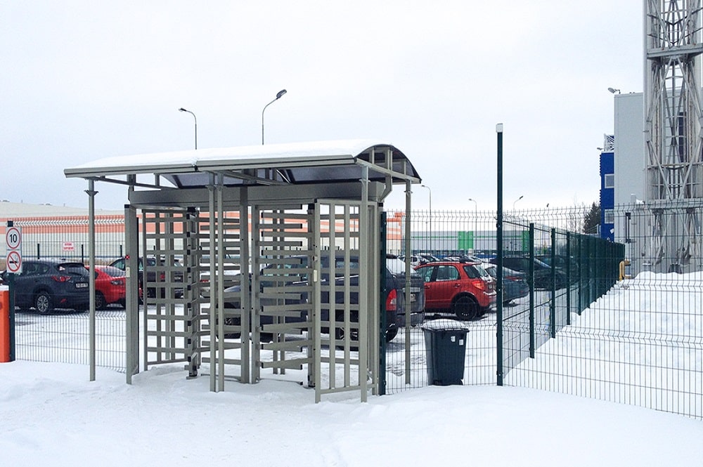 - Роторные полуростовые или полноростовые. Разница в высоте перекрываемого прохода – в первом случае 1 метр, во втором – более двух метров. Узкий проход требует монтажа добавочного проходного пункта, через который можно проходить с объемными грузами. Их установка возможна в помещениях и на улице, часто ставят внутри торгово-развлекательных центров, или магазинах.